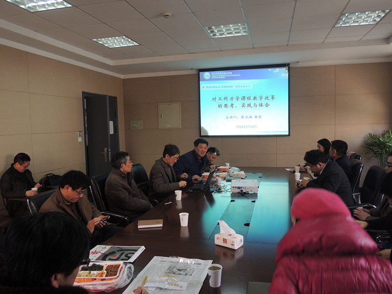 2014年3月10日中午,航空航天学院“教与学”系列教学论坛第二次活动在玉泉校区第五教学楼326会议室顺利举行。此次论坛活动邀请了浙江大学建筑工程学院陈水福教授作题为“对工科力学课程教学改革的思考、实践与体会”的主题发言,全院20余名一线教师参加了本次交流。