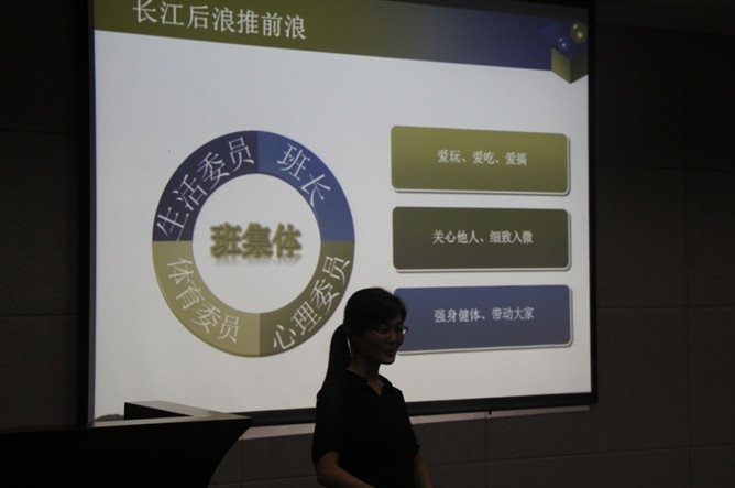 游戏结束后,进入班委改选环节(图3),通过本人自荐、无记名投票的方式,班会最终选举出钱坤、傅燕妮、胡建强、汪秋笑为新一届班长、心理委员、体育委员和宣传委员。大家还就班级即将开展的秋季出游,其地点和形式展开了讨论。