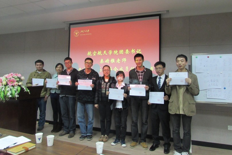 11月15日晚18点30分,航空航天学院新一届研博会主席团换届选举大会在玉泉校区教五333顺利举行。航空航天学院党委副书记戴志潜老师、团委副书记秦婧雅老师,校研究生会副主席张继元同学,航空航天学院学生会主席李昊歌同学以及近50名学院研究生代表参加了此次选举会议。大会由第六届研博会组宣部部长刘曼同学主持。