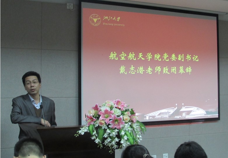 最后,院党委副书记戴志潜老师致大会闭幕词。他总结了这次会议的精神,鼓励新一届主席团成员珍惜这次锻炼自我的机会,学会肩负责任,屏住压力,汲取经验,为将来走向社会奠定坚实的基础。并希望第七届研博会能秉承优良传统,加强与兄弟院系的交流,脚踏实地,力求新成绩。