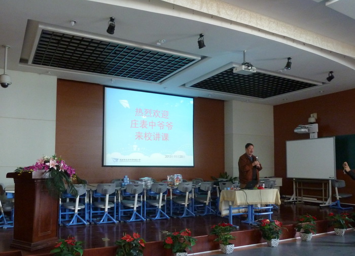 11月20日下午,原浙江大学理论力学创新应用实验室副主任、中国随机振动学会理事长、航空航天学院退休教师庄表中教授、院党政办周利霞老师和航空航天系研究生第一、二支部的支部书记朱美军和赵旭升两位同学,赴杭州市大关中学附属小学进行科普知识讲座,并参观其航空航天展览馆。