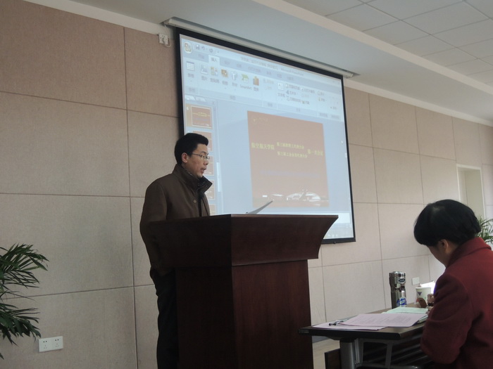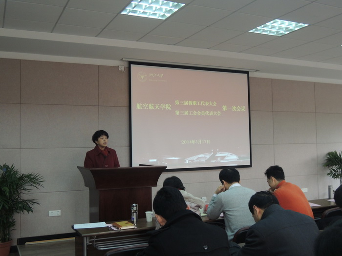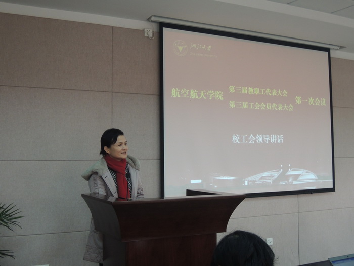 伴随着庄严的国歌,九点三十分,学院第三届“双代会”一次会议正式开始。正式会议由大会执行主席戴志潜主持。校工会副主席毛晓华代表校工会对大会的召开表示热烈的祝贺并作讲话。毛晓华副主席对学院近年来各项工作取得的成绩给予了高度评价,她指出,航空航天学院工会一直以来在围绕中心,服务大局,在团结全院教职工投身学院建设中发挥了不可替代的作用。过去所取得的成绩标志着学院各项工作迈上了一个新的台阶。这次大会是推进学院民主政治建设,切实保障好、发挥好教职工各项民主权益,推动学院发展的一次大会。她相信,新一届航空航天学院教职工、工会委员会将继承学院的优良传统,以此次大会为契机,创新举措,发扬成绩,为推动学院各项工作顺利开展发挥积极作用。