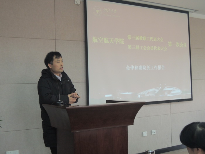 最后,大会执行主席戴志潜作了总结发言。在浙江大学校歌声中,航空航天学院第三届教职工代表大会、第三届工会会员代表大会第一次会议圆满结束。