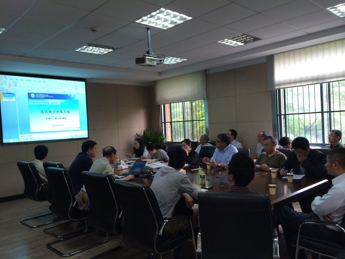 2014年5月19日中午,航空航天学院“教与学”系列教学论坛第三次活动在玉泉校区第五教学楼326会议室顺利举行。此次论坛活动邀请了学院本科教学督导郭乙木教授作题为“浅谈教学的德与能”的主题发言,全院近30名一线教师参加了本次交流。